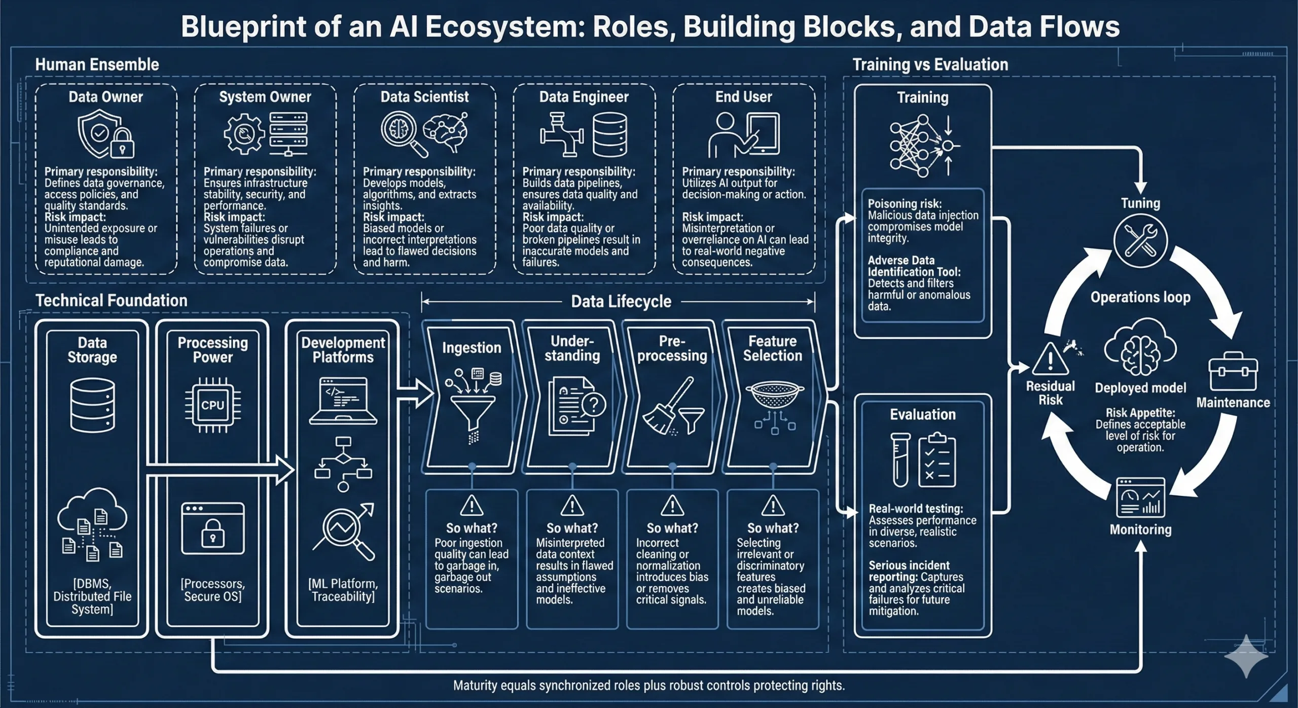 Learner’s Objective Understanding these roles and infrastructural blocks is the essential first step in responsible AI management. By mastering the relationship between the human ensemble and the technical stage, you can ensure that AI systems are not only high-performing but also legally compliant and ethically sound.